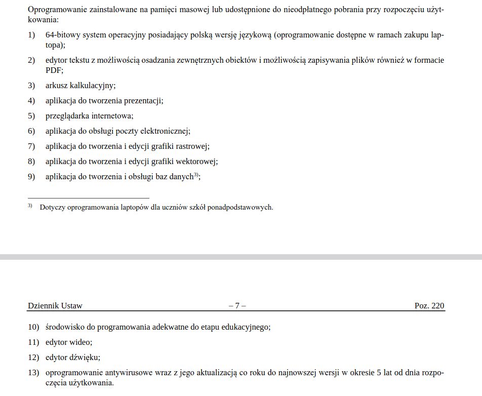 TIL, że wymagania laptopów możliwych do nabycia w programie Laptop dla Nauczyciela nie wymuszają instalacji Windowsa: