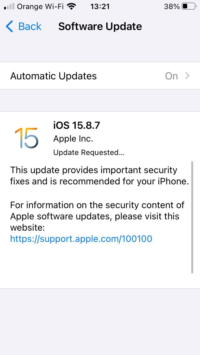 Ja właśnie aktualizuję swojego iOS 15.x